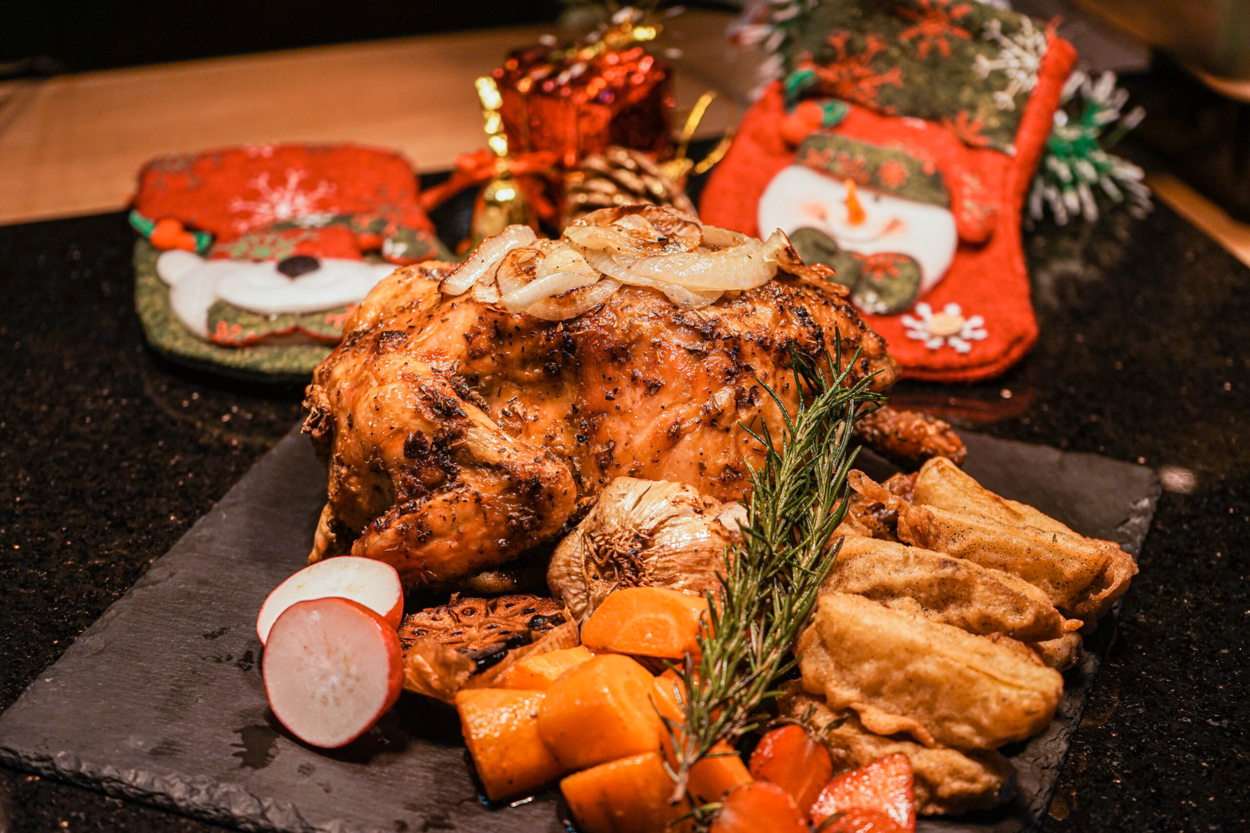Aneka hidangan nusantara berpadu dengan menu Natal favorit, roasted chicken yang lezat dan menggugah selera. Suasana makin syahdu dengan lantunan lagu Natal dari paduan suara Voice of Soul yang menghadirkan nuansa damai dan penuh makna.