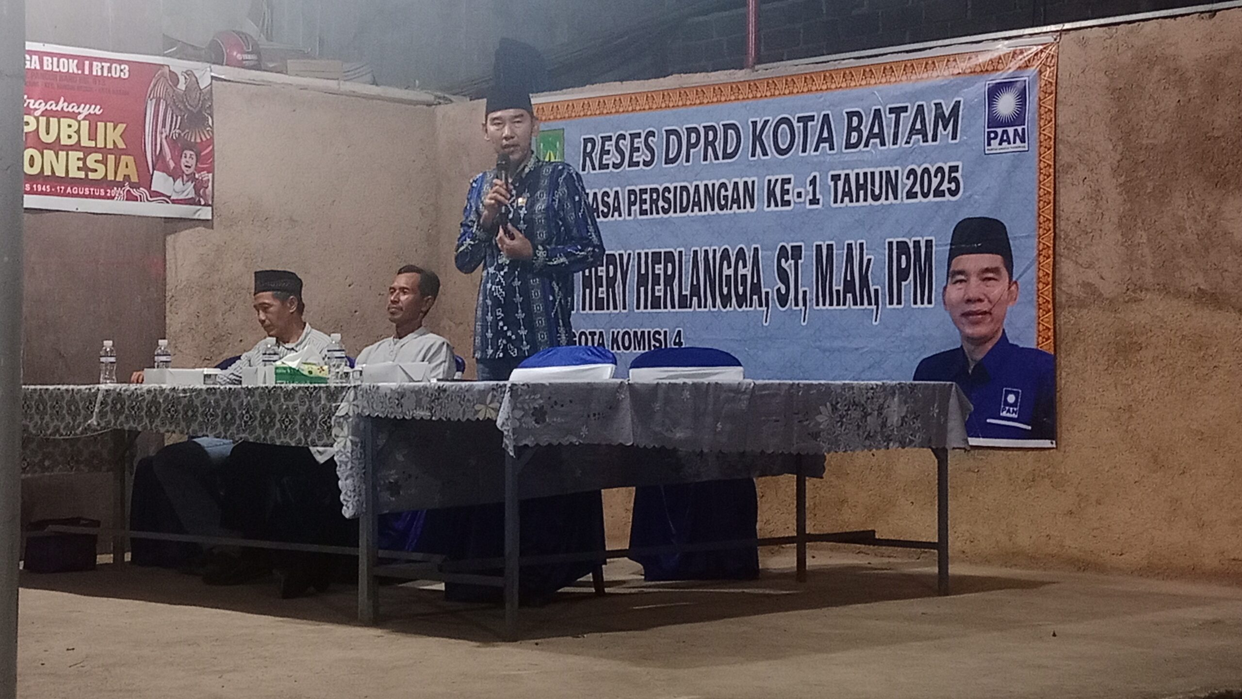 Keprisatu.com – Reses anggota DPRD Kota Batam, Ir. H. Hery Herlangga, ST., M.Ak., IPM, di RW 13 Kapling  Pancur Baru Kelurahan Duriangkang Kecamatan Sungai Beduk Kota Batam berlangsung hangat dan penuh antusias warga, Sabtu (29/11/2025).