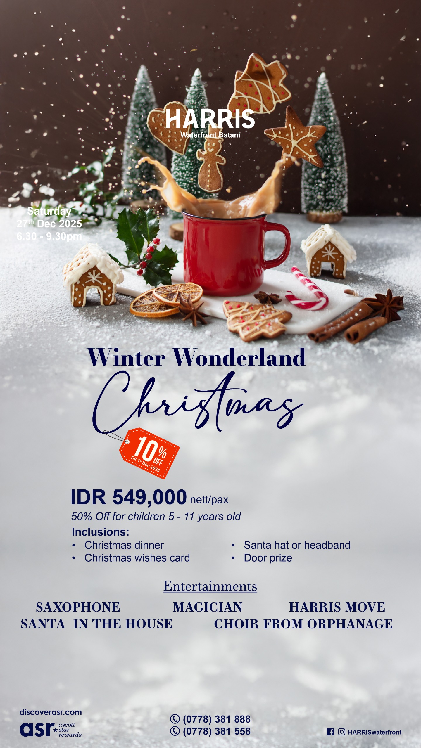 Natal tahun ini, jadilah bagian dari momen-momen indah yang tak terlupakan bersama HARRIS Batam. Dari kehangatan “White & Gold” hingga keajaiban “Winter Wonderland”, kedua acara ini menawarkan pengalaman kuliner dan hiburan yang tak hanya memuaskan selera, tapi juga menyentuh hati. Manfaatkan promo early bird dan diskon khusus untuk merayakan Natal dengan gaya, ekonomis, dan penuh kebahagiaan.