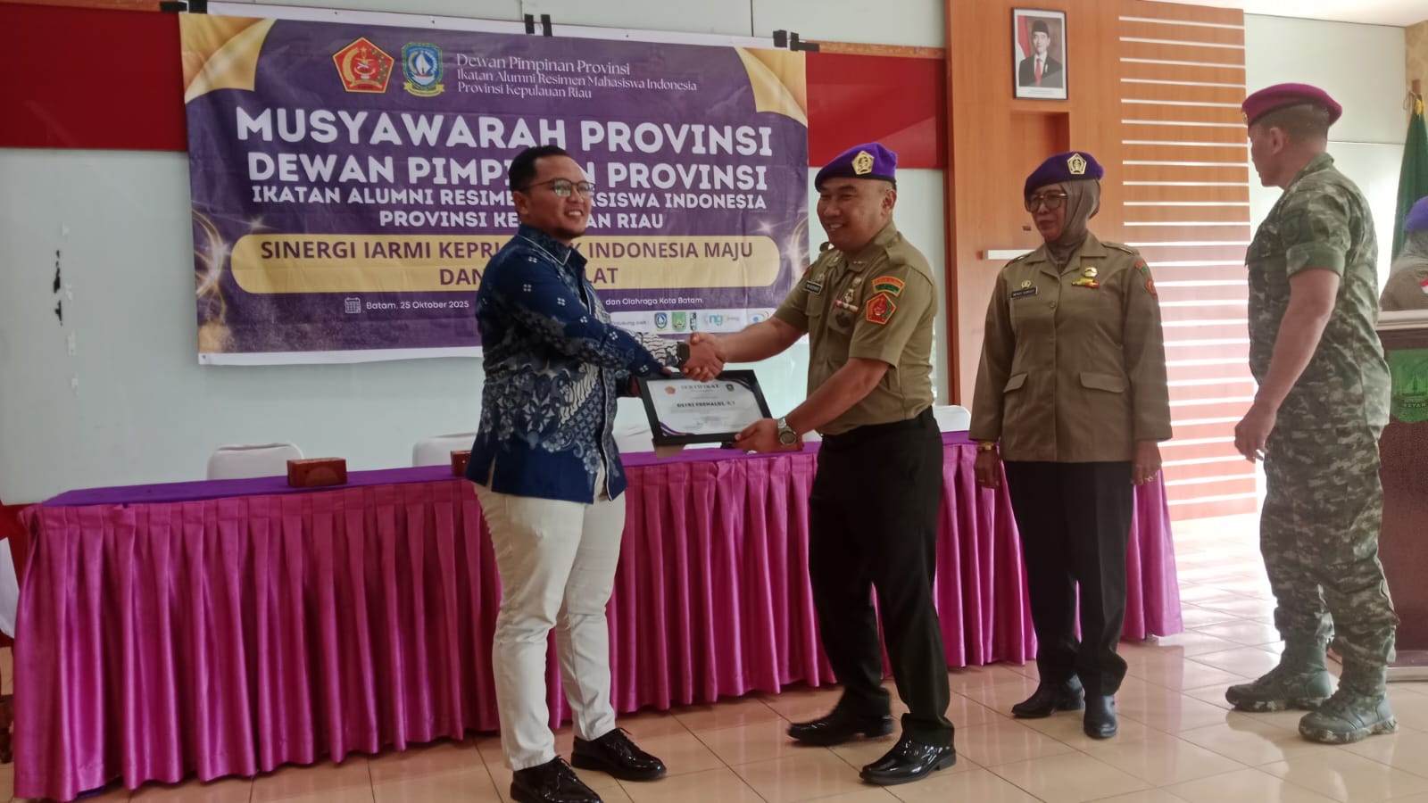 Batam, Keprisatu.com –Musyawarah Provinsi (Musprov) Ikatan Alumni Resimen Mahasiswa Indonesia (IARMI) Kepulauan Riau berlangsung di Kantor Pemuda dan Olahraga (Kanpora) Batam, Sabtu (25/10/2025), dengan suasana penuh keakraban antaralumni Menwa dari berbagai daerah di Kepri.