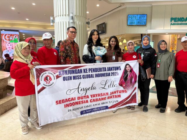 Yayasan Jantung Indonesia (YJI) Cabang Batam menyambut hangat kunjungan Miss Global Indonesia 2025, Angela Lillo, yang juga merupakan Duta Yayasan Jantung Indonesia, di Rumah Sakit Awal Bros (RSAB) Batam, pada Rabu (12/11/2025).