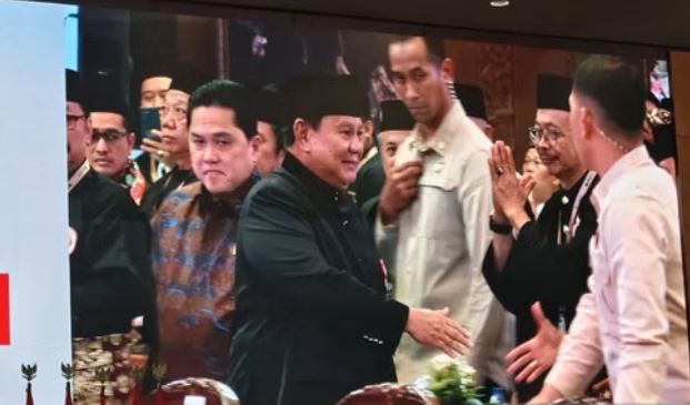 Berdasarkan pantauan di lokasi, Prabowo tiba sekitar pukul 13.30 WIB dengan mengenakan kemeja hitam, kopiah hitam, serta kain sembong bernuansa emas dan merah marun yang mencerminkan identitas budaya nusantara.