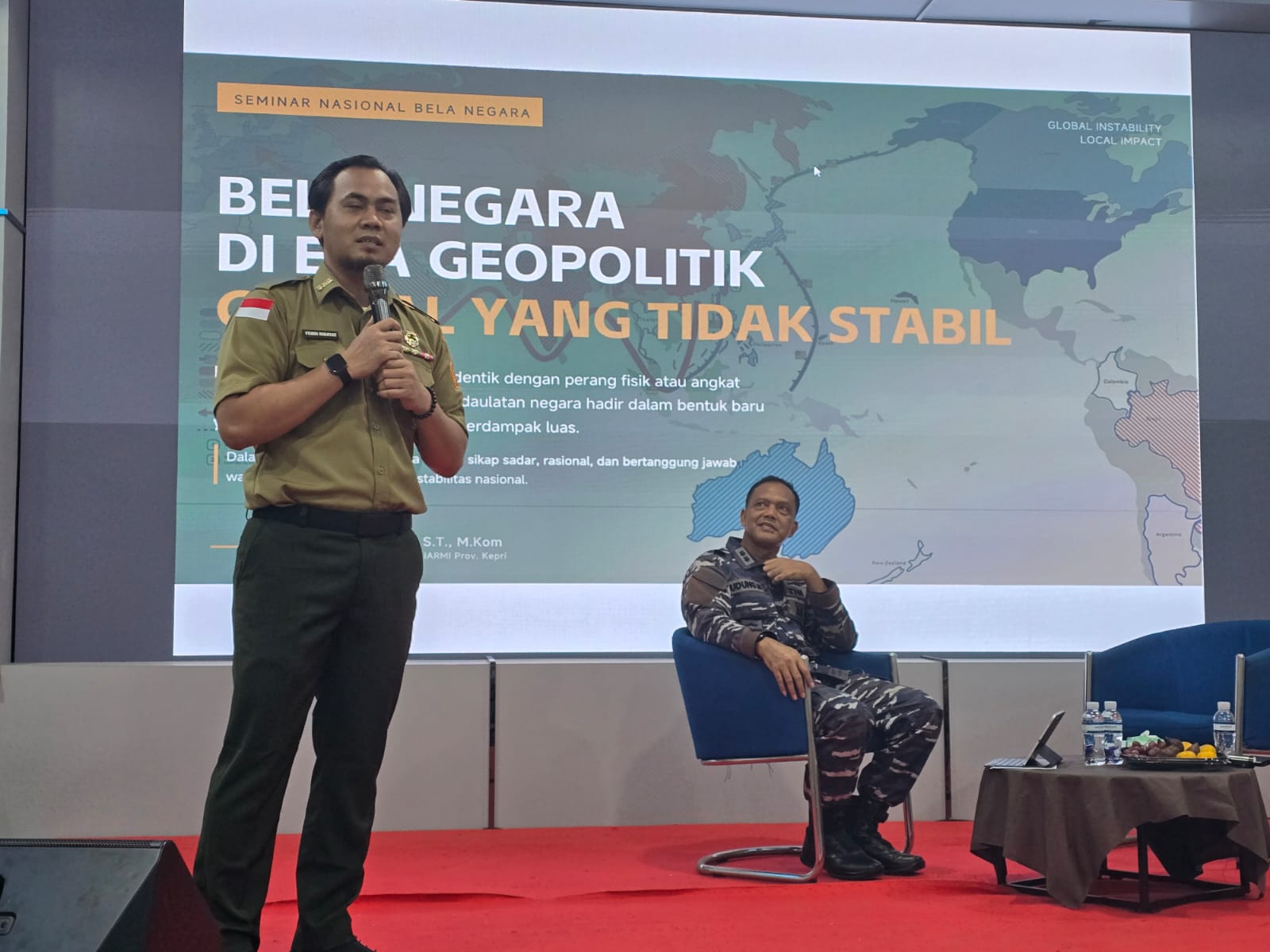 Dewan Pimpinan Provinsi Ikatan Alumni Resimen Mahasiswa Indonesia (DPP IARMI) Provinsi Kepulauan Riau bersama Resimen Mahasiswa (Menwa) Mahabahari Satuan 051/Wira Sakti Politeknik Negeri Batam menggelar Seminar Nasional Bela Negara, Sabtu (20/12/2025), di Aula 2 Politeknik Negeri Batam.