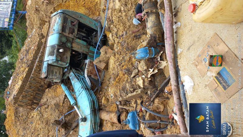 Pipa tersebut patah akibat tertimpa alat berat saat terjadinya hujan dengan intensitas tinggi yang hampir merata di seluruh Kota Batam.
