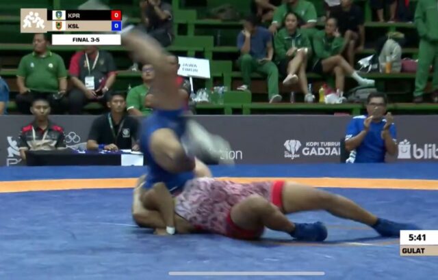 Kudus, Keprisatu.com – Pertandingan cabang olahraga Gulat pada hari pertama PON Bela Diri 2025 di Djarum Arena 2B, Kaliputu, Kudus, Jawa Tengah, Senin (13/10), menghadirkan pertarungan sengit antarprovinsi. Jawa Timur tampil dominan dengan memborong sebagian besar medali emas di hari pembuka, menegaskan tradisi kuat mereka di cabang ini. Namun di tengah dominasi itu, perjuangan atlet Kepulauan Riau justru menjadi sorotan tersendiri.